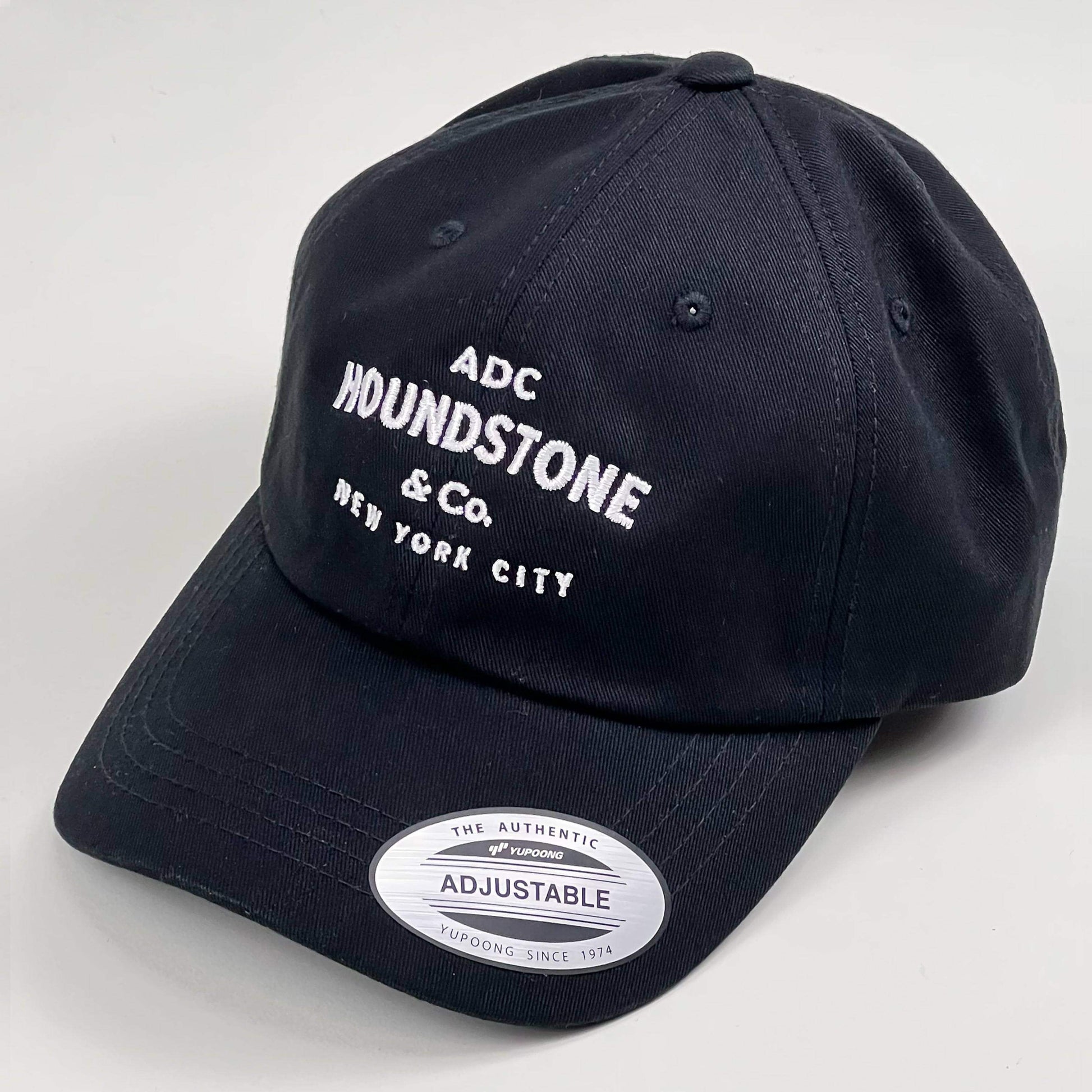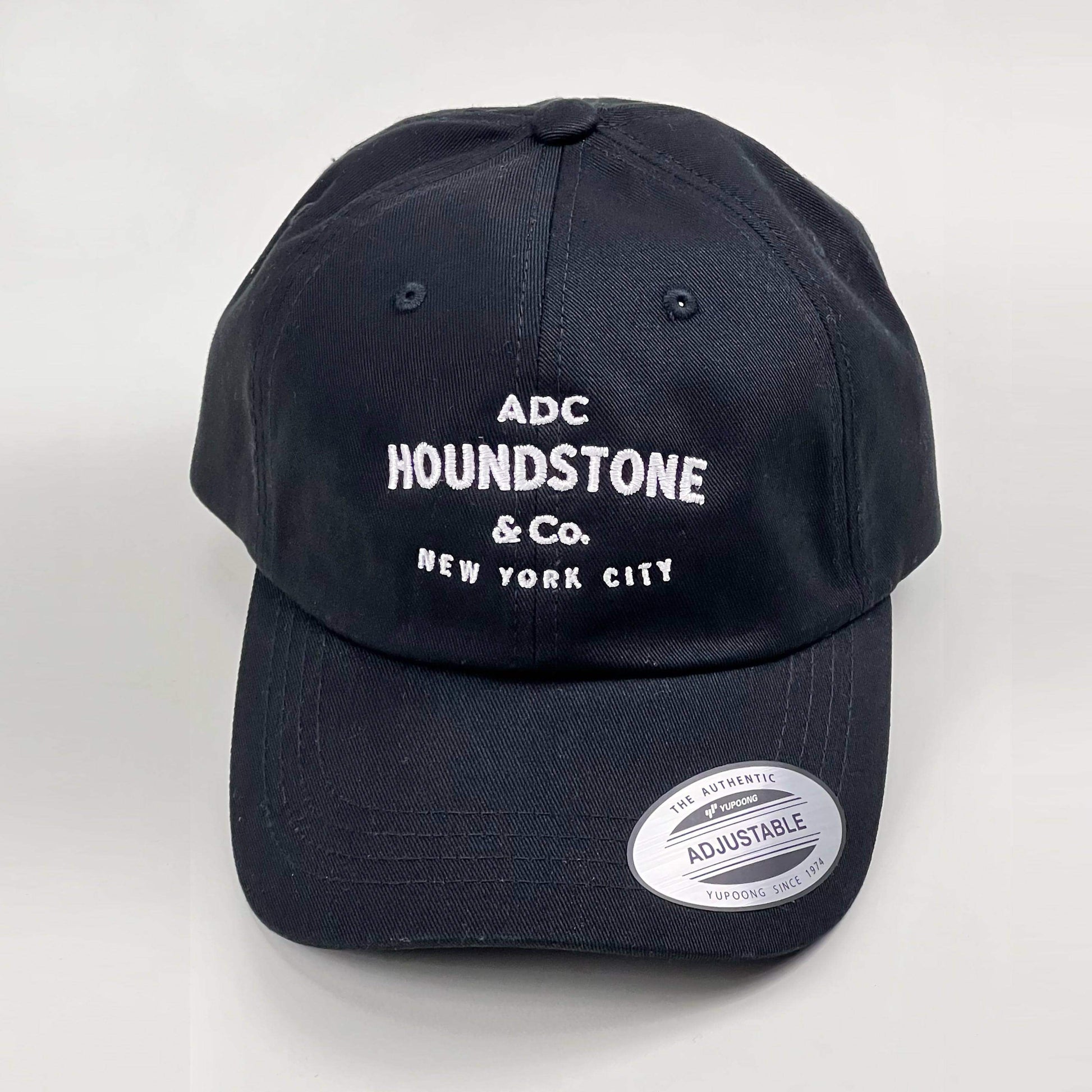 Twill unstructured cap in black twill with white embroidered Houndstone logo. Adjustable buckle back.